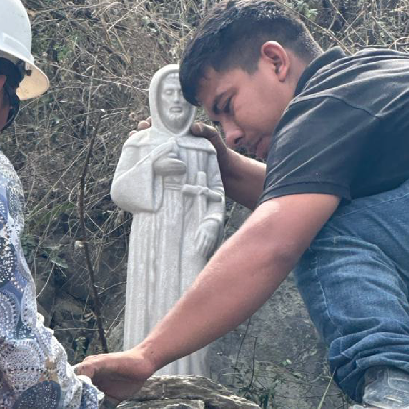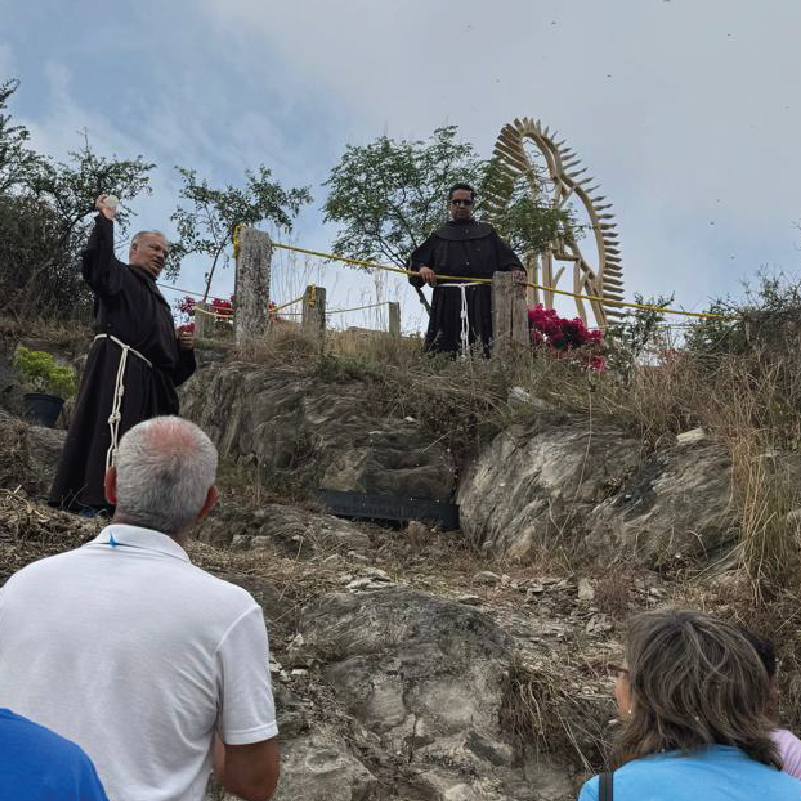 El Sábado Santo, 19 de abril de 2025, Fray Pedro Olayo, de la Orden de los Franciscanos, acompañado de Fray Aron Tirado, bendijo el proyecto del Cántico de las Criaturas y la imagen de San Francisco de Asís, colocada cerca del final del sendero, muy próxima a la imagen de la Virgen.